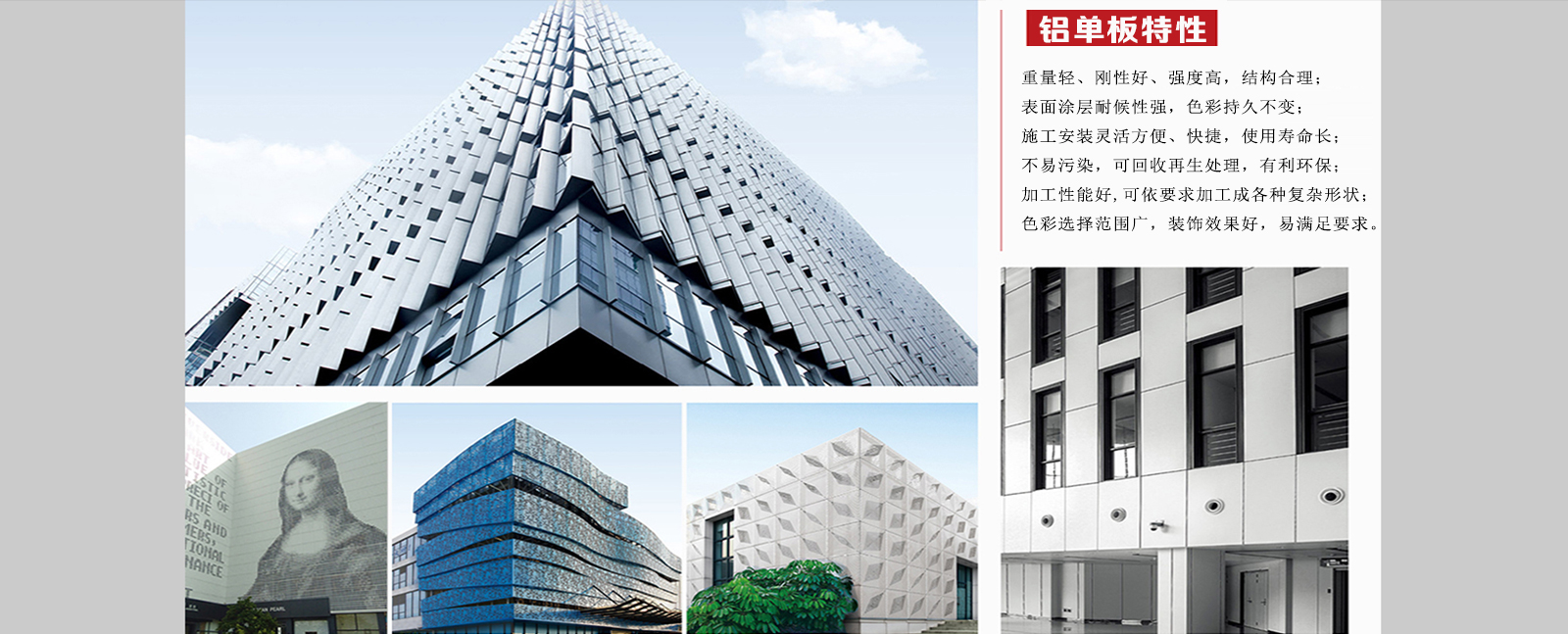 鋁單板工程案例可應(yīng)用于:建筑物外墻、梁柱、門頭、陽(yáng)臺(tái)、雨棚、廣告牌、室內(nèi)建筑裝飾、商業(yè)大樓、別墅…